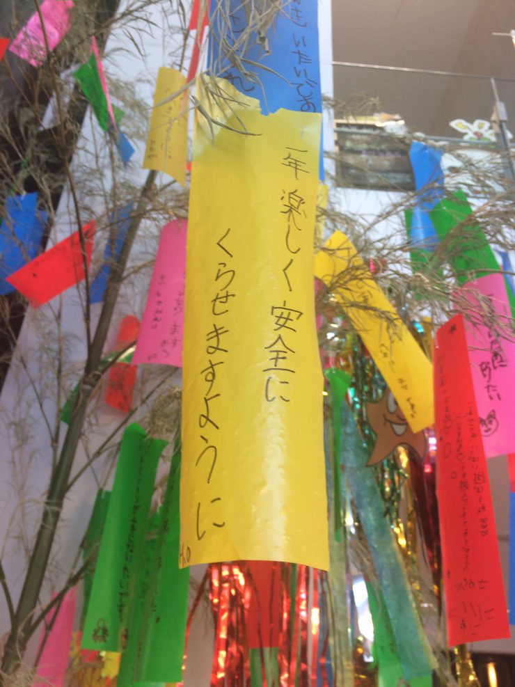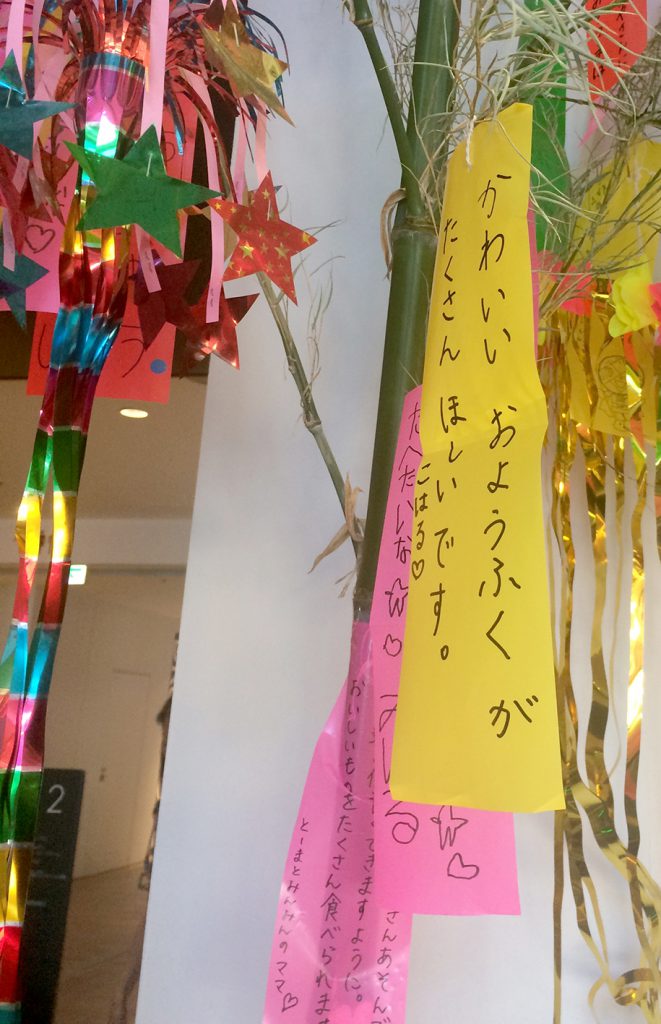 色とりどりの短冊がきれい。たくさんの子どもたちの願いが書かれていて、日本の行事の中でも風流でステキだなあ…と思います。