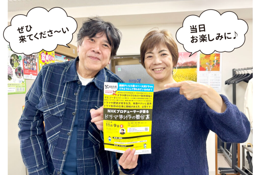 講演会ではNHKの朝ドラや大河ドラマの制作秘話などをたっぷり披露いただく予定です。開催に先立ち、プロデューサーという仕事のやりがいや講演会の内容について、磯さんにお話を聞きました!