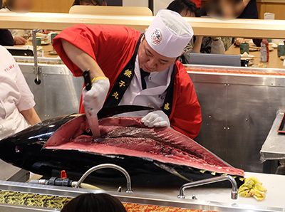 1都3県に展開するグルメ寿司チェーン「すし銚子丸」が、マグロの解体ショーでギネス世界記録TMに挑戦すると聞き、メイン会場となった光が丘店へ行ってきました!